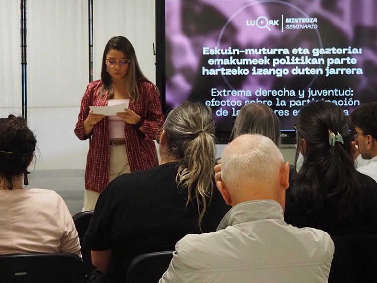 Este seminario, organizado por el Observatorio de la Actividad Política (LUPAK), busca abrir un espacio de reflexión sobre cómo estas tendencias políticas pueden afectar los avances logrados en materia de igualdad y, específicamente, a la participación real y efectiva de las mujeres en política. En esta sesión, contaremos con la participación de Ainhoa Novo Investigadora y Profesora de Ciencia Política de la EHU y Lionel Delgado, Investigador y Divulgador en Masculinidades, (anti)feminismos e Igualdad y creador del proyecto Bróders.